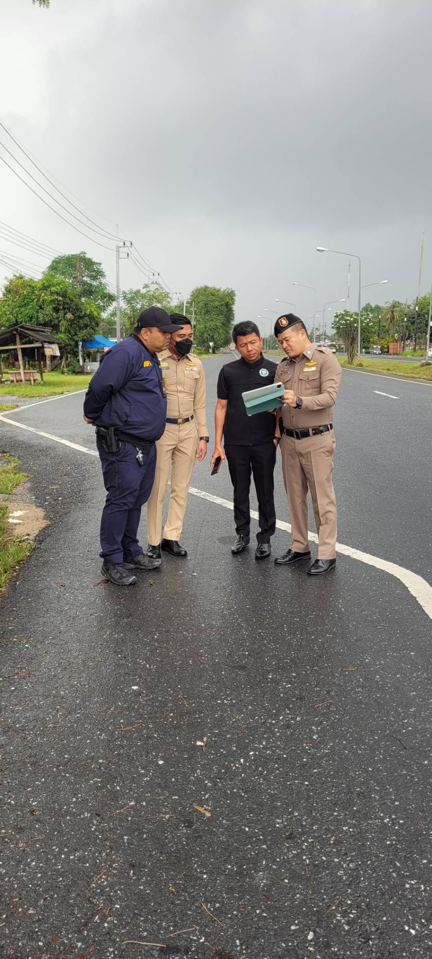 ร่วมเจ้าหน้าที่ฝ่ายอำเภอ และเจ้าหน้าที่ฝ่ายปกครอง ลงพื้นที่ตรวจสถานที่เกิดเหตุ อุบัติเหตุทางถนนรายสำคัญเพื่อวางแผนหาแนวทางแก้ไข ถนนหลวงหมายเลข ๔๐๘ (ขาออกเมือง) ต.ท่าเรือ อ.เมือง จ.นครศรีธรรมราช