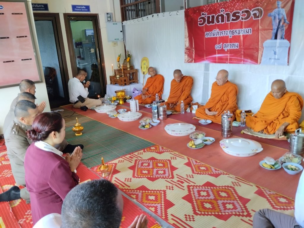 พ.ต.อ.ยรรยง หิรัญบูระณะ ผกก.สภ.ชะเมา พร้อมด้วย รอง ผกก.ฯ,สว.ฯ และ ข้าราชการตำรวจ สภ.ชะเมา ทุกนาย ร่วมในพิธีวันตำรวจ ประจำปี 2566 ได้ร่วมกันเข้าแถวเคารพธงชาติ ตามด้วยพิธีเปิดกรวย ธูปเทียนแพร ทำเคารพพระบรมฉายาลักษณ์พระบาทสมเด็จพระปรเมนทรรามาธิบดีศรีสินทรมหาวชิราลงกรณ พระวชิรเกล้าเจ้าอยู่หัว จากนั้น ประธานกล่าววัตถุประสงค์การจัดงานวันตำรวจ ตามด้วยพิธีกล่าวคำสัตย์ปฏิญาณตน และปิดท้ายด้วยพิธีอ่านสารผู้บังคับบัญชาตำรวจแห่งชาติ ที่ทำเป็นประจำทุกปี หลังจากนั้น ได้ไปบวงสรวงสักการะศาลพระภูมิเจ้าที่ ที่ตั้งประจำ ณ สภ.ชะเมา และได้นิมนต์พระมาทำพิธีทางสงฆ์ ณ ชั้น 2 อาคารที่ทำการ สภ.ชะเมา ในโอกาสนี้ด้วย