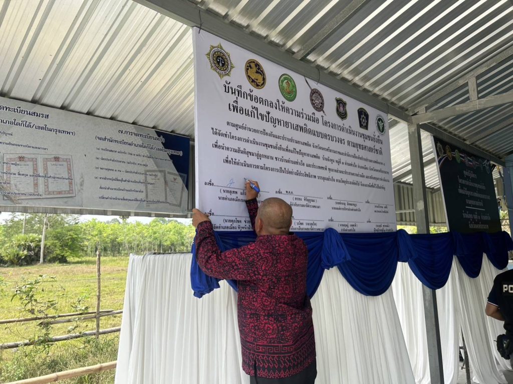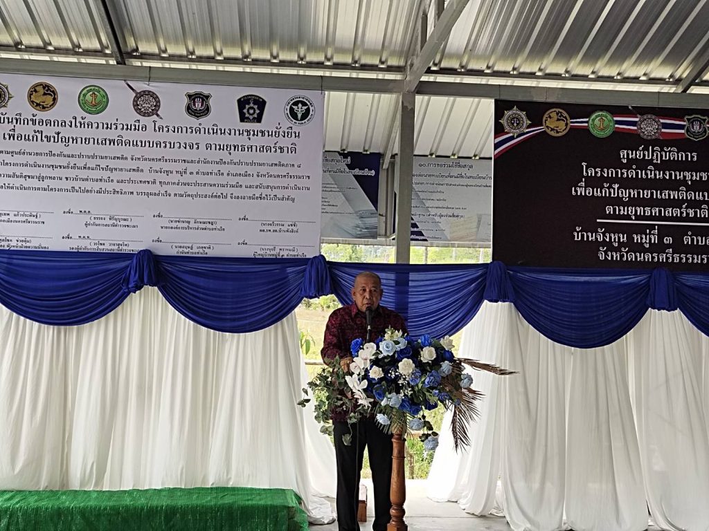 ได้ทำพิธีเปิดโครงการชุมชนยั่งยืนเพื่อแก้ไขปัญหายาเสพติดแบบครบวงจร ตามยุทธศาสตร์ชาติ หมู่บ้าน บ้านจังหูน หมู่ที่ 3 ตำบลท่าเรืออำเภอเมือง จังหวัดนครศรีธรรมราช