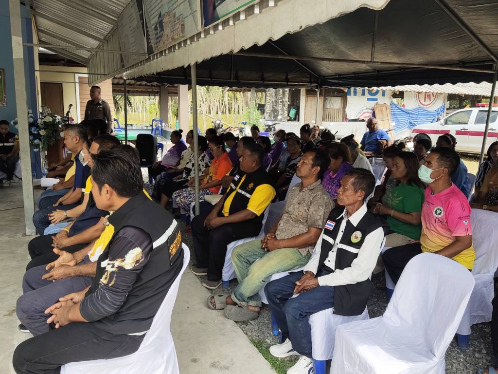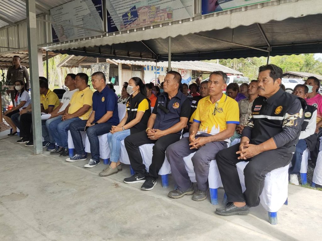 พ.ต.ท.ศุภวิทย์ ขุนวิช่วย สวป.สภ.ชะเมา หน.ชุดปฏิบัติการฯ กล่าวรายงาน พร้อมด้วย , ข้าราชการตำรวจชุปฏิบัติการฯ , ผู้ใหญ่บ้าน ผู้ช่วยผู้ใหญ่บ้านตำบลท่าเรือ , ผู้นำชุมชน ,เจ้าหน้าที่ อสม. และประชาชน บ้านจังหูน ม.3 ต.ท่าเรือ อ.เมือง จว.นครศรีธรรมราช เข้าร่วมพิธีเปิดโครงการฯ