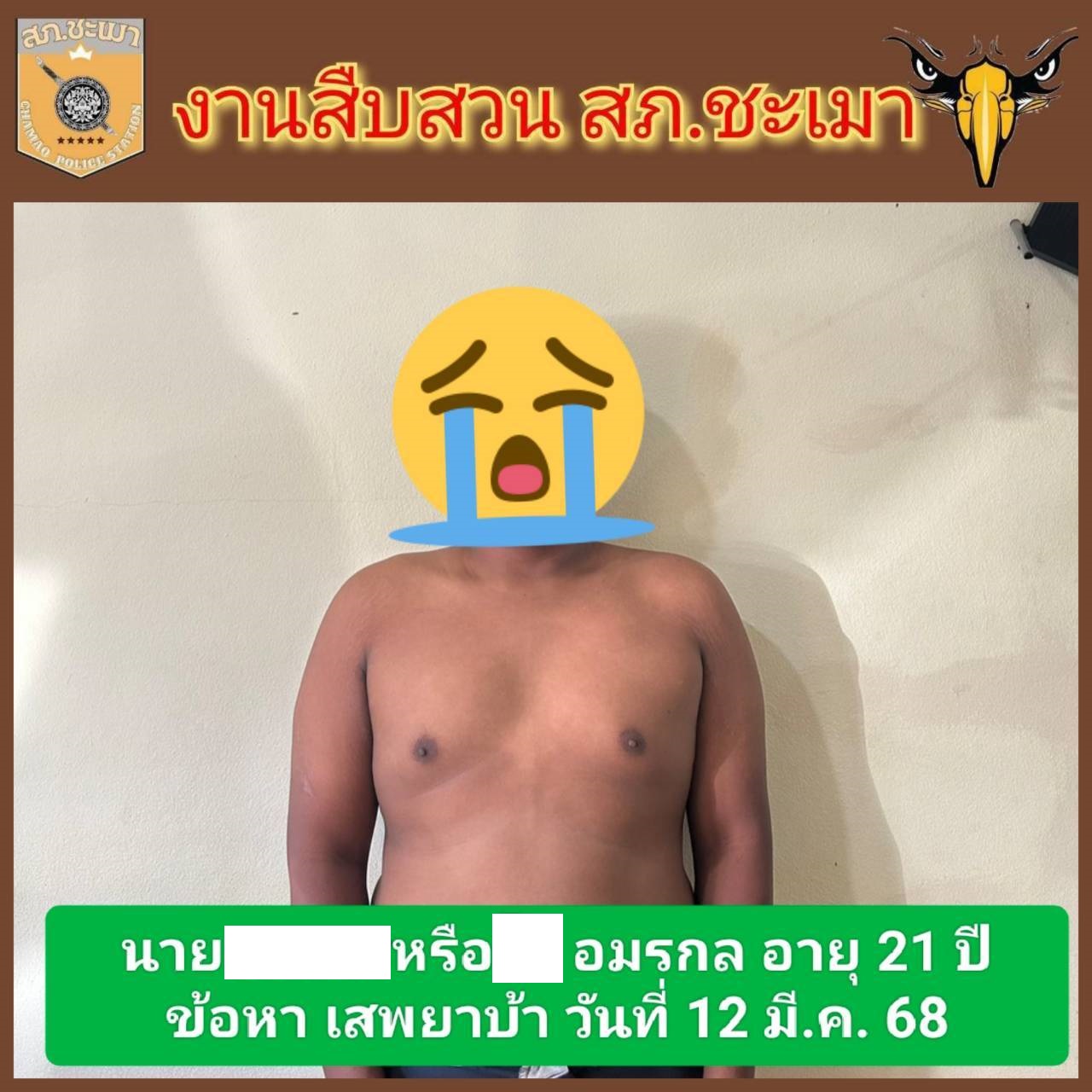 วันที่ 12 มี.ค. 68 ภายใต้อำนวยการ พ.ต.อ.ยรรยง หิรัญบูรณะ ผกก.สภ.ชะเมา,พ.ต.ท.วรโชค วาจาสุจริต รอง ผกก.สส.สภ.ชะเมา เจ้าพนักงาน ปปส.หมายเลข 6606282