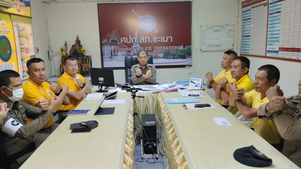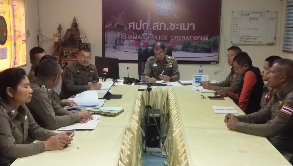2. ผู้กำกับสถานีตำรวจภูธรชะเมา อบรมชี้แจงและให้ข้อมูลเกี่ยวกับ การประเมินแก่เจ้าหน้าที่ตำรวจในหน่วยงาน