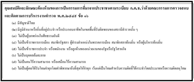 ที่มา: คู่มือการดำเนินการตามระเบียบ ก.ต.ช. ว่าด้วยคณะกรรมการตรวจสอบและติดตามการบริหารงานตำรวจ พ.ศ. 2549