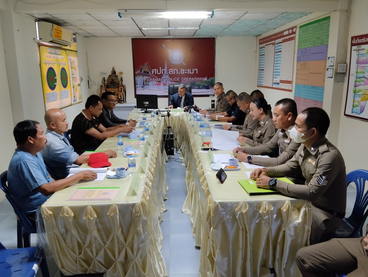 ร่วมประชุมคณะกรรมการตรวจสอบและติดตามการบริหารงานสถานีตำรวจภูธรชะเมา เพื่อรับฟังแนวทางและความคิดเห็นของภาคประชาชนกับการมีส่วนร่วมของภาคประชาชนในกิจการงานตำรวจ