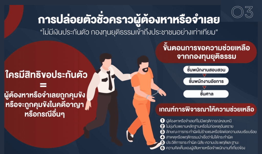 - สิทธิที่จะได้รับการประกันตัว (ป.วิ.อาญา มาตรา ๘๔/๑, ๑๐๖)